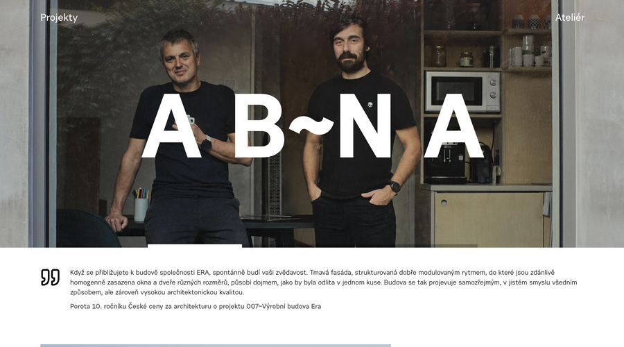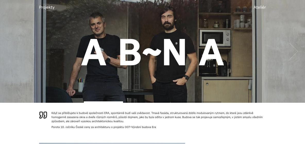 Úvodní slider s vybranými projekty okamžitě zaujme návštěvníka. Velkoformátové fotografie dominují každé stránce. Minimalistické typografie a tmavý motiv nechávají vyniknout architektuře.