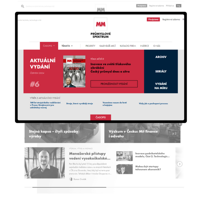 Přední strojírenský magazín prošel změnou a dostal plnohodnotnou webovou verzi. Vše je postaveno na našem vlastním CMS systému Folio, který umožňuje rozsáhlé možnosti pro on-line publikování. Design homepage reflektuje specifickou strukturu časopisu. Cílem je nejen pohodlné čtení na webu, ale i prezentace tištěné verze magazínu a především získání nových uživatelů a předplatitelů.