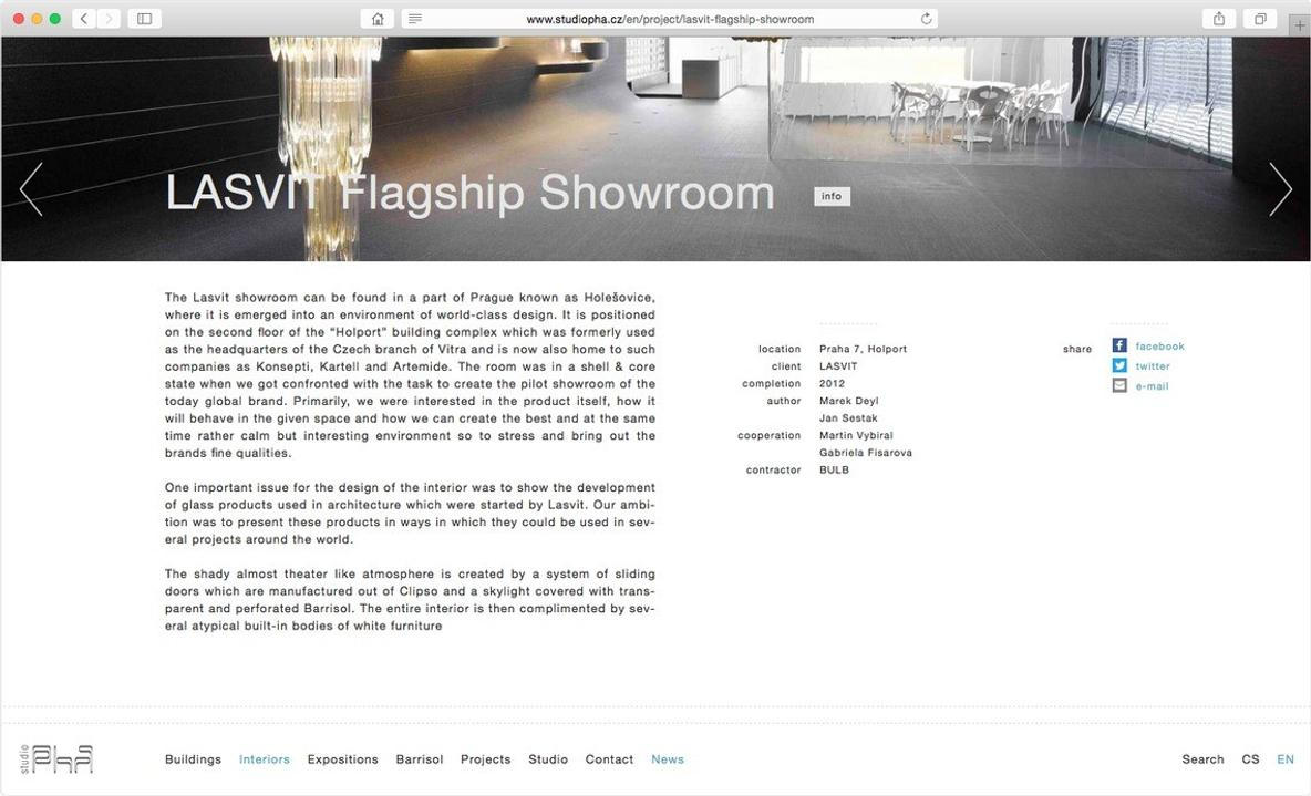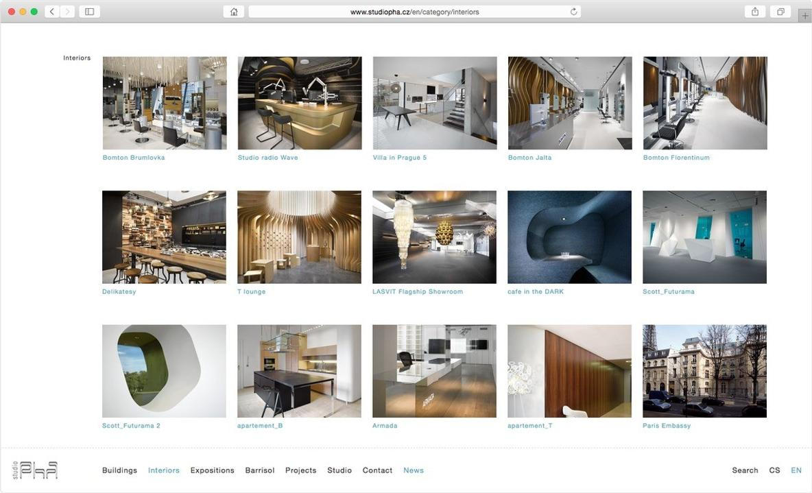 Architektonické studio potřebuje portfolio, které nechá projekty vyniknout. Minimalistický design a velkoformátové fotografie.